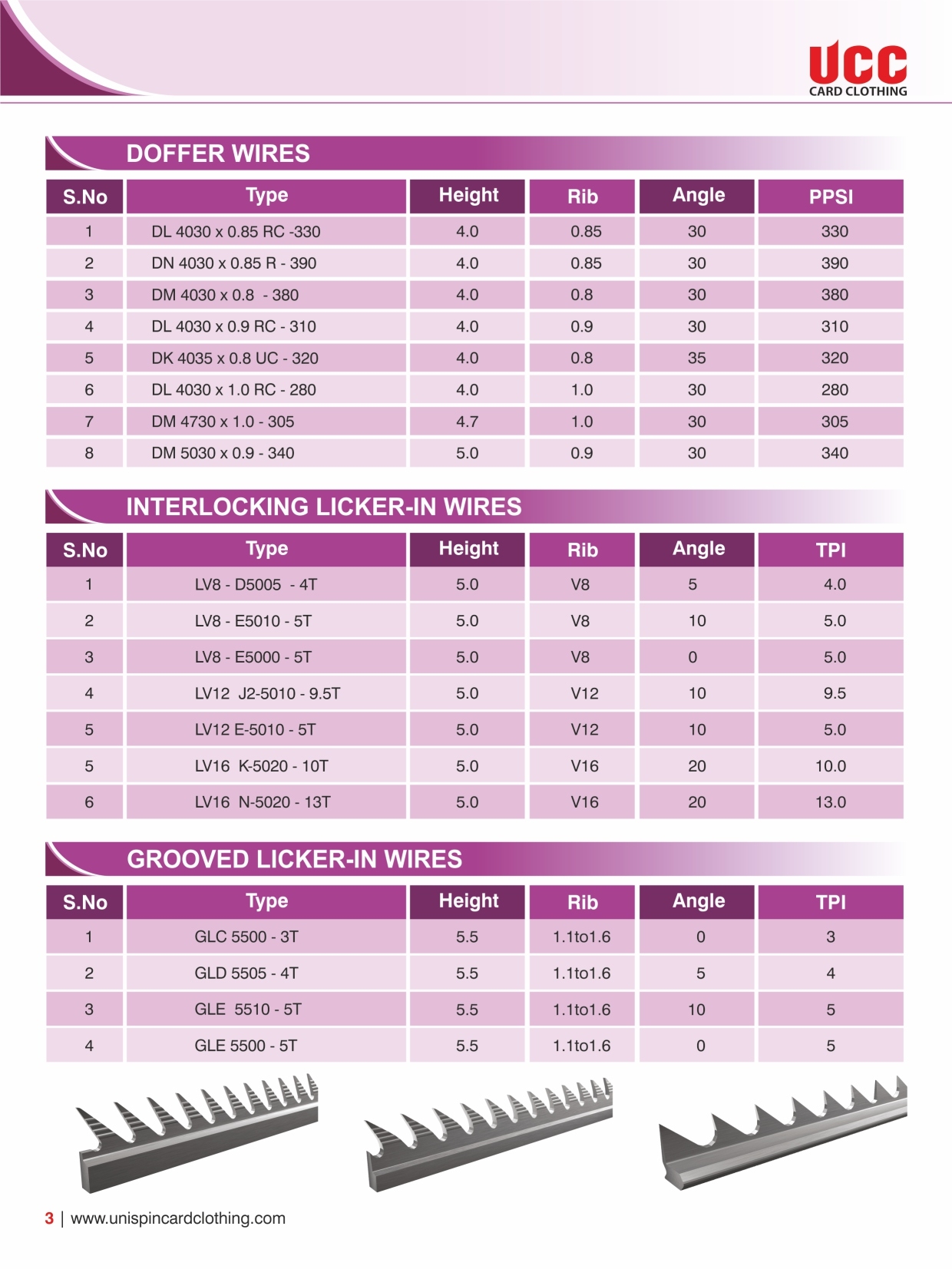 GROOVED LICKER-IN WIRES